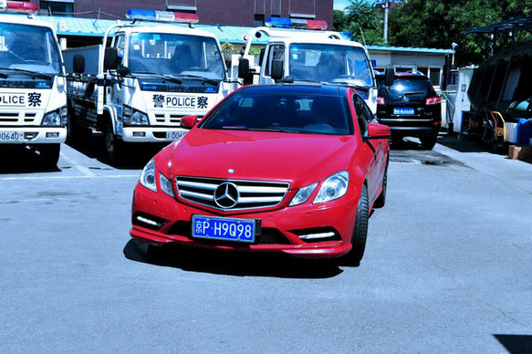 8月7日上午,民警在某购物中心附近进行排查。在排查完两辆红色奔驰轿车无果后,民警来到该购物中心地下一层停车场,在某停车位又发现一辆红色E系奔驰轿车。经检查,民警确认该车悬挂的京P号牌为伪造的,其真实身份为一辆浙江号牌的车辆。