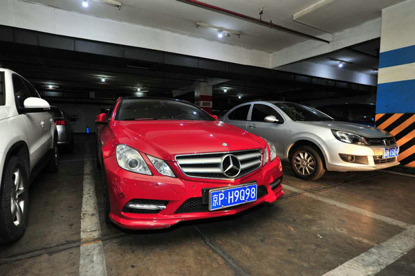民警在地下停车场又发现一辆红色奔驰车(张耀/摄)