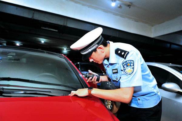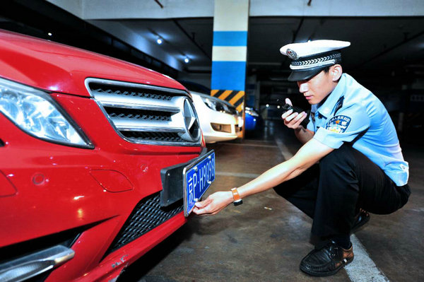 民警在合适车牌信息(张耀/摄)