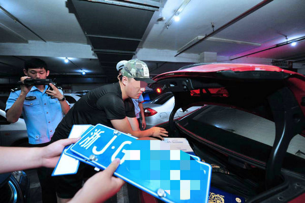 民警从车内找到一副真的号牌(张耀/摄)