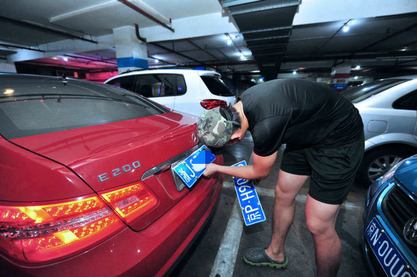 张某承认自己网购了一副假的北京号牌(张耀/摄)