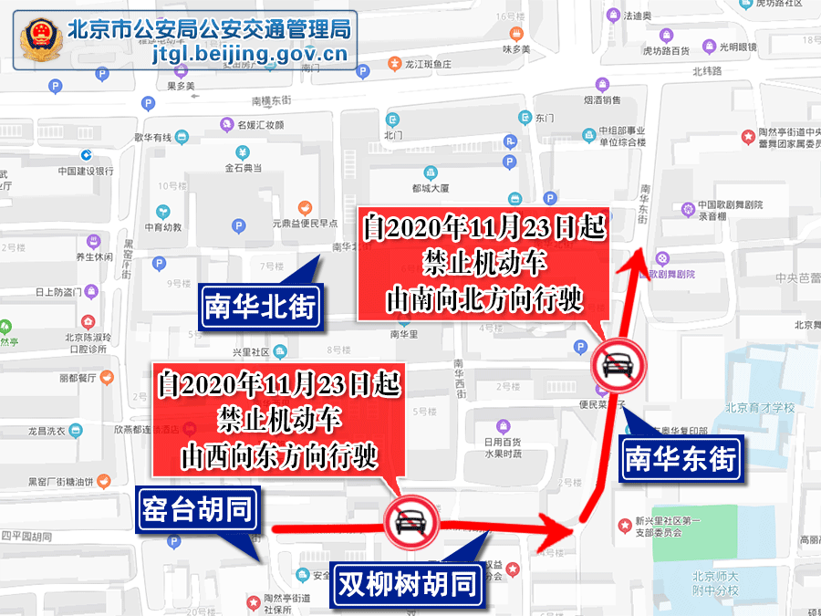 二、近期交管通告:西城区陶然亭地区南华东街、双柳树胡同将改为单向行驶