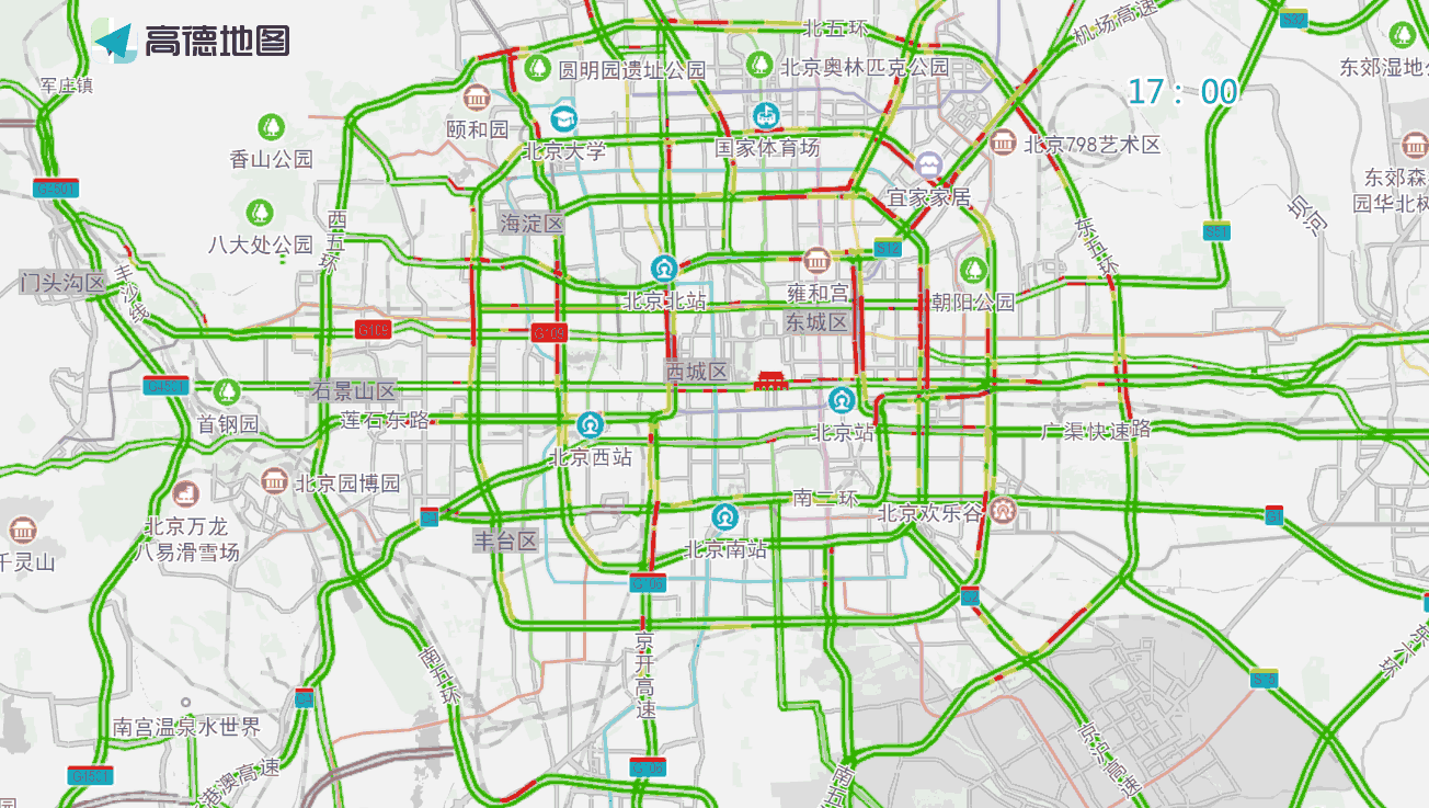 晚高峰通行压力比早高峰大,东、西、北二、三、四环,东、西、北五环,东六环部分路段,以及建外大街、通惠河北路、莲花池东路等城区道路出京方向通行压力较大,京藏高速、京承高速、京通快速、京港澳高速、机场高速等将出现出京的潮汐车流,高峰时段为17:00—20:00。周五晚高峰城区及各条高速、主干道的出京方向通行压力最大。