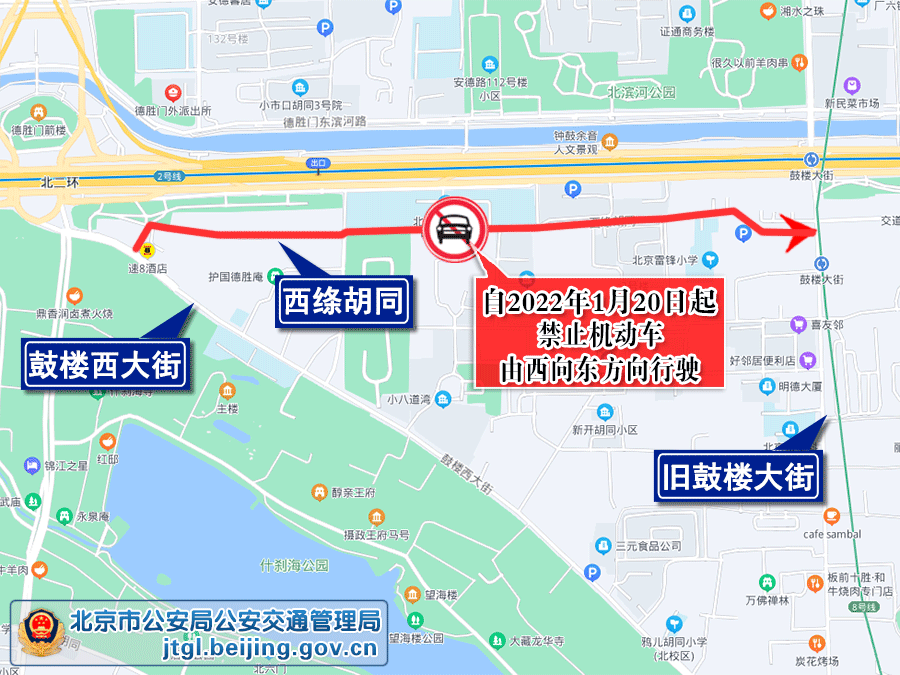 为保障西城区西绦胡同的交通安全和畅通,根据道路交通安全法律法规有关规定,决定自2022年1月20日起,西绦胡同(旧鼓楼大街至鼓楼西大街)禁止机动车由西向东方向行驶。