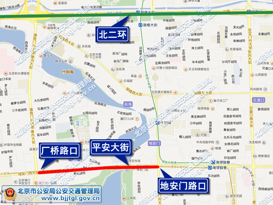 2、平安大街厂桥路口至地安门路口,受旅游景点的车辆集中影响也容易出现通行缓慢的情况,车多时段主要集中在10时至17时。当上述路段出现行驶缓慢的情况时,过境车辆可以绕行北二环通行,由于周边停车位有限,建议前往市民朋友尽量乘坐公共交通。