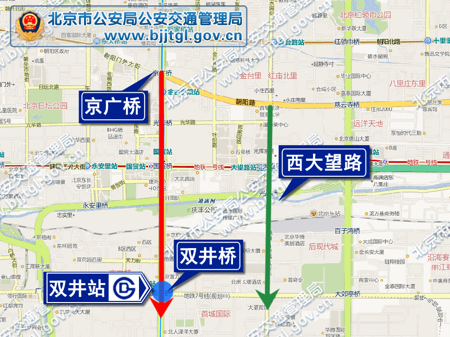 2、东三环双井桥北向南方向主路出口处易出现车辆排队行驶缓慢的情况,特别是晚高峰期间,对东三环主路造成较大影响,易导致京广桥至双井桥北向南车行不畅,过境车辆可以根据实际情况绕行西大望路行驶。也可以乘坐地铁十号线,在双井站下车即可到达。