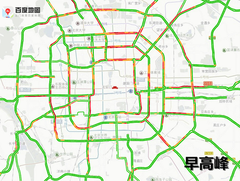 二环路、东三环、崇文门外大街、建国门外大街、北五环、平房桥、东四环、黄平路等路段易发生拥堵。