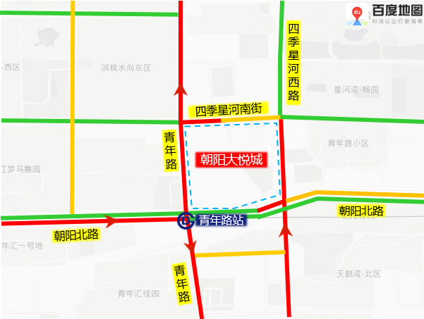 去往朝阳北路大悦城的市民朋友,可关注实时路况,选择车流相对较小的路段行驶,或乘坐地铁等公共交通工具前往。