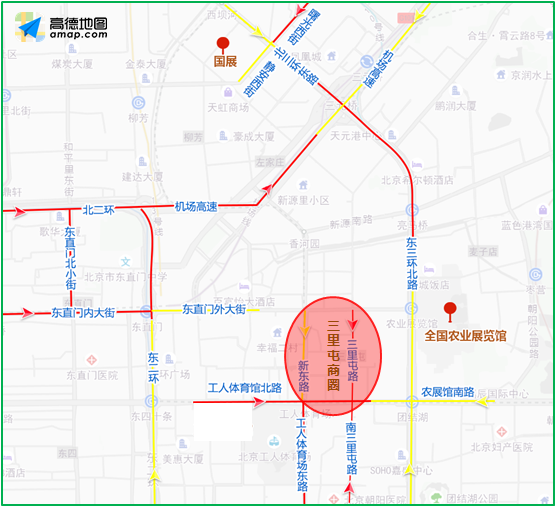 周末期间,前往参加农展馆、老国展的展会和招聘会的车流和三里屯商圈的车流交织,东北二环至三环区域部分道路可能出现短时车行缓慢的情况。市民朋友在出行时可尽量避开此区域,前往参加展销会、招聘会或去往三里屯商圈的市民朋友可查看实时路况,适当选择出行线路和停车地点。