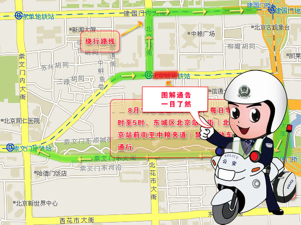 在好运北京体育赛事和空气质量测试期间,我局不断推出以人为本的服务措施,加大为广大出行者提供交通服务,合理、科学地选择路线行驶。例如:我局延续发布多年的交通管理措施通告将在形式上有重大突破,今后发布的交通管理通告不仅有详细的文字,而且都将尽可能地配上管制区域地图和绕行路线地图,让司机们对交通管理措施可以一目了然。