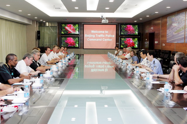 活动中,国际奥委会观察员参观了我局交通指挥中心,观看了反映北京智能交通管理的专题片《律动之光》。我局领导介绍了指挥中心科技应用情况,陈述了奥运交通指挥机制、奥运交通管理政策和措施,并回答了国际奥委会观察员关于奥运期间交通事故、交通应急、奥林匹克专用车道设置和运行、残奥会交通组织、与奥组委交通部信息交流共享等方面的问题。
