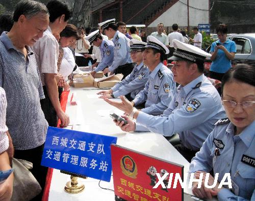 9月17日,北京市公安局公安交通管理局的民警在为群众解答。