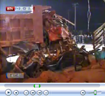 昨天(10日)晚间在朝阳来广营附近发生一起两车事故,造成小客车内4人当场死亡,两车损毁。