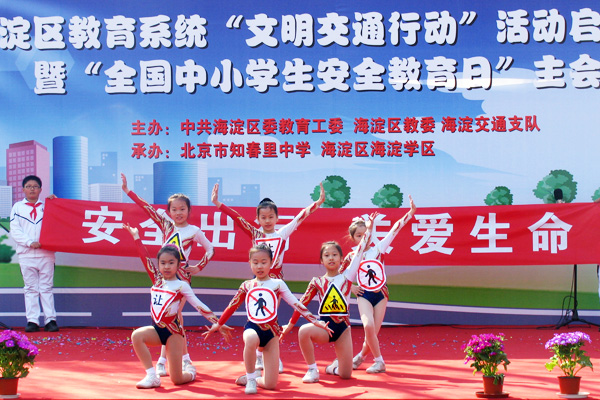 东城支队联合区教委组织教委举行“绿色出行、文明交通、从我做起”交通安全宣传教育实践暨交通安全文化节启动仪式,由学生代表向全区中小学生宣读“绿色出行,文明交通,从我做起”倡议书,与会领导向教师文明交通宣传队成员授旗,向学生代表配发文明交通徽章。朝阳支队联合区教委等部门以“中小学生交通安全日”活动为契机,举行辖区首个学校交通安全教育基地揭牌仪式,学生代表表演了“小交警指挥手势操”,学生及家长代表分别在《文明交通倡议书》上签名承诺。海淀支队联合区教委、文明办等部门在知春里中学举行教育系统文明交通行动启动仪式,与会领导向辖区中学生文明交通志愿者代表颁发了“文明交通,从我做起”绶带,对区中学生交通安全知识竞赛和征文活动进行了部署,学生代表表演了自编的交通安全文艺节目。房山支队发动辖区中学生及教师文明交通志愿者在校园周边路段开展了“文明交通,我做贡献”交通秩序维护实践活动。