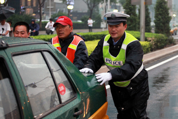 京城入夏以来,降雨不仅频繁,而且多是暴雨,交警在雨中已救助很多遇到困难的市民。多年以来,在“为亲人站岗”的理念指导下,交警在工作中时刻做好为市民服务的准备,在紧急情况下为急症病人引路、帮助车主换轮胎,都已成为家常便饭。