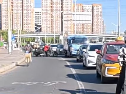 然而,熙熙攘攘的车流阻断了他的“逃跑路线”,于是他便选择了另一种方式——在车流中穿行“寻找掩护”。
