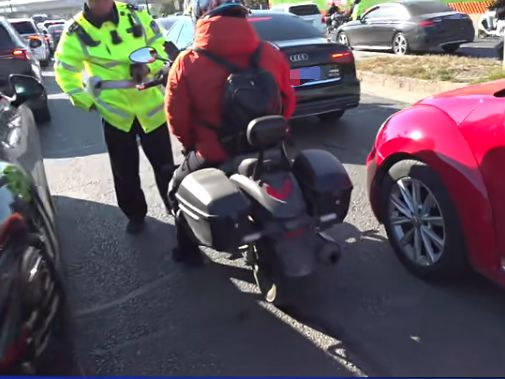 近日,北京交警在工作中,查获了这样一名摩托车驾驶人。
