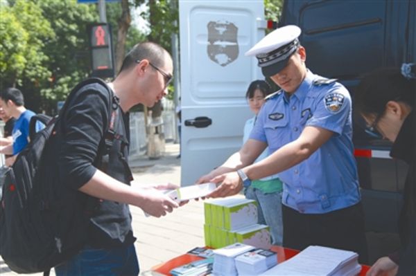 [图]一边放片一边发书 交警劝解“飙车族”