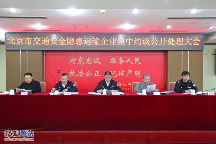 为加大对本市道路运输企业交通安全监管力度,深入开展交通安全隐患“大排查、大清理、大整治”专项行动,切实排查、整治一批安全隐患问题,全力预防交通事故,12月7日下午,市公安交通管理局联合市安全生产监督管理局、市交通委运输管理局在西城交通支队召开“北京市交通安全隐患运输企业集中约谈公开处理大会”。