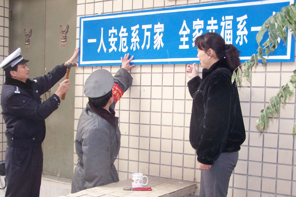 “一人安危系万家、全家幸福系一人”,11月13日起,东城区和平里、景山、东四等部分街道安办以70天交通秩序整治行动为重点,制作了100块固定交通安全宣传提示牌,在管界40余个社区内安装,提示群众自觉守法,保证家人的幸福平安。