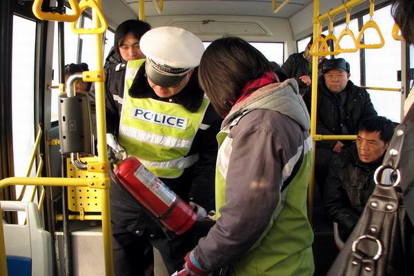 检查组由顺义支队领导带队,各客运公司安全部长配合,检查的重点是公交车辆的安全保障和超载问题。对检查过程中发现的个别客运车辆灭火器过期及超载现象,当即责令车队及司售人员对存在的问题进行整改。同时,检查组还对客运驾驶人、售票员进行了面对面的道路交通安全法和“春运”有关注意事项宣传教育,对乘坐公交汽车的群众进行安全出行、文明交通宣传,引导大家共同维护“春运”道路交通秩序,创建和谐交通环境。