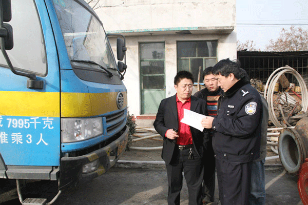 检查组深入辖区三家危化品运输单位,先后听取了各单位司机交通安全教育、车辆检查、重点驾驶员情况汇报,查看了单位内部交通安全工作计划、驾驶员教育纪录、宣传专栏、单位与驾驶员签订责任书情况,并对车辆安全状况、是否超过使用年限等进行了检查。检查组要求各单位要认真履行交通安全责任,加强交通安全监管措施,对危险货物运输车辆和人员要进行全面彻底排查,切实做到底数清、情况明,采取有效监管措施,从源头上把好交通安全关卡,确保两会期间道路交通安全。