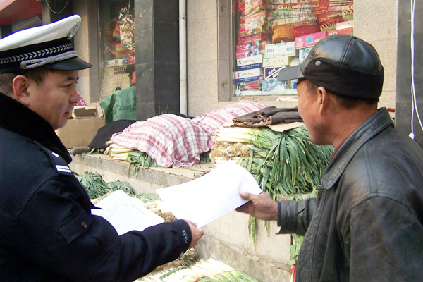 民警与沿街百余家营销店主进行了见面沟通,向店内经商务工人员发放《春运交通安全注意事项》和《致外地来京经商务工人员一封信》等宣传材料,提示店主按照门前三包工作要求,维护好门前秩序,尽量避开交通高峰时段装卸货物,减少和避免交通拥堵。同时,要加强对店内务工人员的宣传教育,做到规范行车走路,杜绝步行斜穿、猛跑、翻越护栏及三轮车超标准载物、电动自行车进入机动车道抢行等危险交通行为。