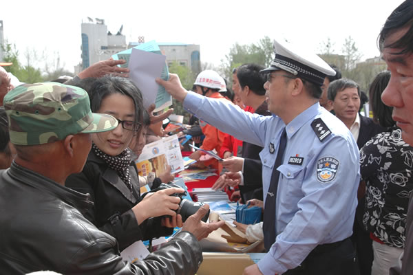 5月12日上午,延庆交通大队开展了文明交通主题宣传活动。 延庆大队民警在活动现场摆放了交通事故和漫画宣传展板,大队领导和民警共同为过往群众发放3000余份交通安全宣传材料,并回答了群众咨询。强调培养文明交通习惯的重要性,教育引导广大群众自觉抵制“十大交通陋习”和“十大交通违法行为”,杜绝酒后驾车、醉酒驾车等严重违法行为,提高文明交通安全意识和参与文明交通安全宣传的积极性。