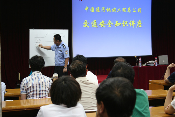 6月28日,民警在国有企业中国通用机械工程总公司,利用图板对引发交通事故成因进行了具体描述,深入分析交通参与者的心理状态及违法行为,讲解交通安全法律法规知识及日常出行安全常识,并播放了交通事故教育片《危在瞬间》,用真实案例教育全体职工提高守法意识,坚决杜绝酒后驾车、超速行驶、疲劳驾驶、闯红灯等危险驾驶行为,自觉遵守道路交通法律法规,保证自己和他人的生命财产安全。