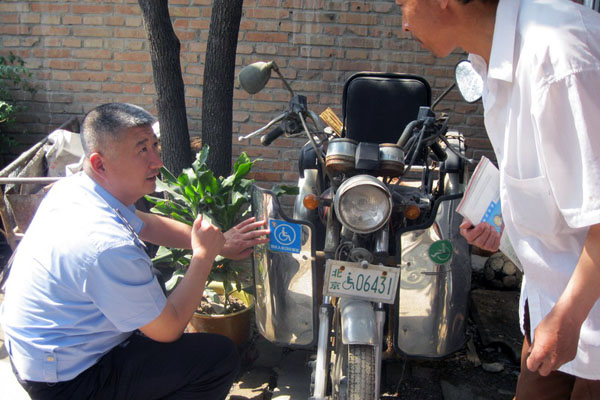 针对青龙湖镇正在修路、残疾群众出行不便的情况,房山支队民警步行1公里深入群众家中宣传交通安全知识、粘贴防伪标识,并先后来到10名困难残疾群众家中上门宣教、上门服务,切实将交通安全知识送到群众家中,将政府的关爱之情送到群众心中。很多残疾朋友及家属看到民警上门服务都激动地表示,以后一定认真配合交管部门,遵守交规,安全行驶。