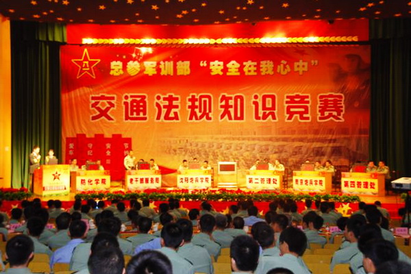 9月25日上午,海淀交通支队联合总参军训部举办“安全在我心中”交通法规知识竞赛暨军车驾驶员签名承诺活动,1000余名军车驾驶员参加活动。