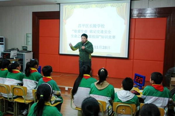 11月28日,昌平区教委和昌平交通支队在长陵学校举办了一场以“珍爱生命铭记交通安全,生命之花怒放校园”为主题的交通安全知识竞赛和主题班会活动,百余名学生、家长、老师、学校领导和支队民警参加活动并在活动横幅上签名。