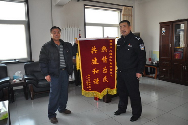 1月28日上午,延庆镇小营村党支部书记专程来到延庆交通大队,将一面绣有“热情为民、共建和谐”的锦旗送到大队领导手中,对交通民警在保障小营村生产建设和维护辖区道路交通秩序工作中做出的贡献表示真诚的谢意。