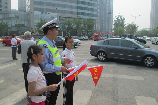 [图]朝阳亚运村大队交通劝阻志愿者现身街头