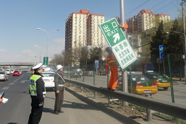 [图]昌平交通支队联合首发公司清理京藏高速非法指路标志
