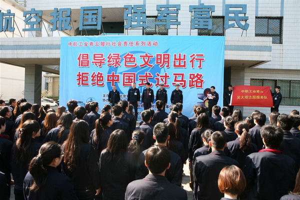 4月25日上午,海淀交通支队联合中航工业青云公司,组织开展“倡导绿色文明出行,拒绝中国式过马路”主题宣传活动。活动启动仪式上,中航青云志愿者代表上台宣读了倡议书——号召大家杜绝“中国式过马路”行为,共同“创建全国文明城区”,为“文明交通行动”出一份力。全体志愿者在印有“倡导绿色文明出行”的标语上签字承诺。启动仪式结束后,第一批志愿者20余人来到四通桥下十字路口开始体验交通秩序维护工作。在民警的指导下,志愿者们向过往群众发放了交通安全宣传材料及宣传品,并利用手中小红旗提醒行人及非机动车关注路口交通信号灯,杜绝“中国式过马路”。