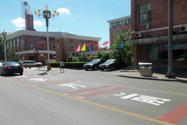 [图]大兴一中门前施划彩色路面 提示过往车辆谨慎慢行