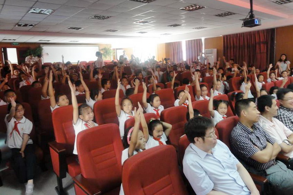 互动交流中,现场的小学生们踊跃发言,争先回答,现场气氛十分热烈。