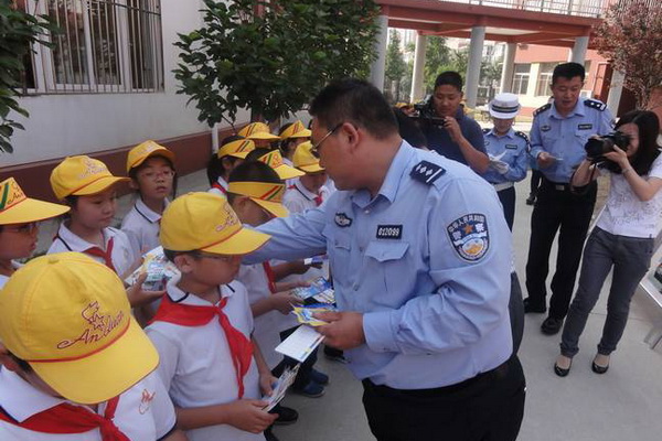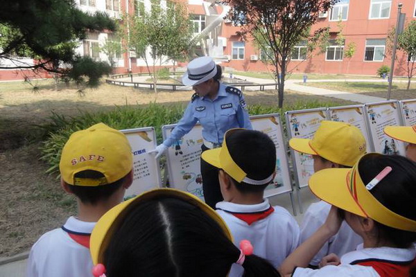 9月11日下午,朝阳交通支队劲松大队联合垡头街道办事处,在首都师范大学附属朝阳实验小学开展“文明交通进校园”宣传教育活动。