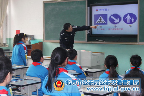 民警一是从懂法守法、年龄特点、天气特点及出行注意事项四个方面入手,利用宣传展板,讲授交通安全常识,引导学生提高自我保护能力。二是通过发放印有交通警示标语的彩笔、书签等文具与学生们进行有奖互动,同学们纷纷述说自己所了解的交通安全知识,并承诺遵守交通法规,文明安全出行。三是号召同学们积极参与文明交通实践活动,对家长酒后驾车、超速、闯红灯等严重交通违法行为进行监督和制止,当好文明交通行动义务宣传员,为营造首都和谐文明的交通环境贡献自己的力量。