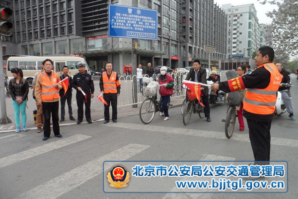 [图]朝阳:组织文明交通劝导员 参与交通秩序维护