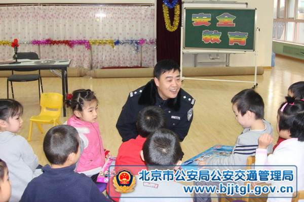 日前,西城交通支队民警来到广电银河幼儿园开展交通安全启蒙教育课程,同时对幼儿园接送孩子的车辆集中开展隐患摸排工作。