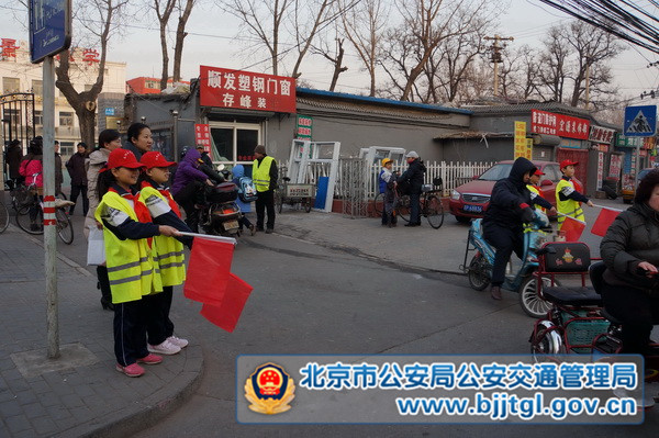 一早,景泰小学的10名小学生交通志愿者就身着反光背心,统一佩戴着文明交通志愿者标志,手举交通安全旗,站到了学校门口的主要路口,配合执勤的民警和交通协管员维护交通秩序。孩子们手中的安全旗随着红绿灯的变化交替挥舞,过往的行人都微笑着听从他们的指挥,路口秩序井然。