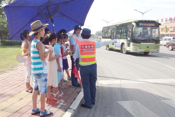 8月6日上午,房山交通支队联合燕山安办,组织向阳小学和前进二小的部分学生来到燕山北庄路口岗,现场学习交通安全知识,体验交通协管员岗位工作。 活动中,同学们仔细听协管员叔叔阿姨讲解交通秩序维护管理工作重点,了解外出时、过马路时的注意事项等交通安全常识,并在民警和协管员的带领下,亲身体验了路口站岗工作,使大家对交通安全有了更加具体的认识,为同学们从小养成良好的交通行为习惯,树立良好的法治意识和文明意识打下坚实的基础。