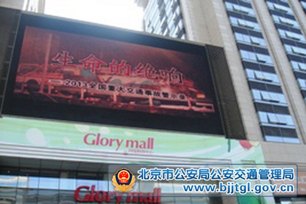 近日,东城交通支队创新宣传手段,将交通安全宣传片搬上了商业街的室外显示屏。