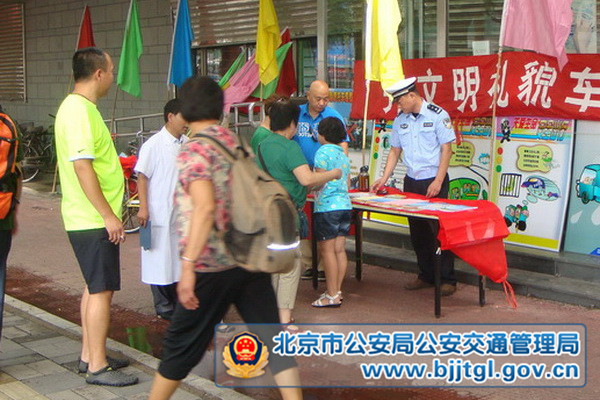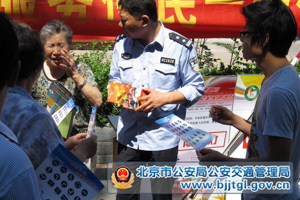 日前,为全面提升广大交通参与者交通文明素质和安全守法意识,预防和减少暑期道路交通事故,西城交通支队民警来到虎坊路、先农坛、天宁寺等辖区社区,通过悬挂横幅、摆放展板、设立宣传站、开设安全课堂、播放交通安全警示教育片、发放宣传材料等诸多形式,向社区居民群众讲述暑期安全出行注意事项,开展暑期交通安全知识讲座。