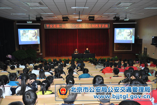 12月1日上午,延庆县第三中学的300余名高中生收听了一堂主题为“平安是福”的交通安全知识讲座,授课的“老师”是来自延庆交通大队的交警同志。 针对大多数学生骑自行车上下学的情况,民警专门准备了丰富的多媒体课件,为大家详细讲解冬季骑车的注意事项,如何在冰雪路面上安全骑行、如何及时反应避 免危险,提示大家在骑行前要确保自行车车闸、车铃的完好,坚决杜绝骑车带人、闯灯越线、骑车逆行等危险的交通违法行为。