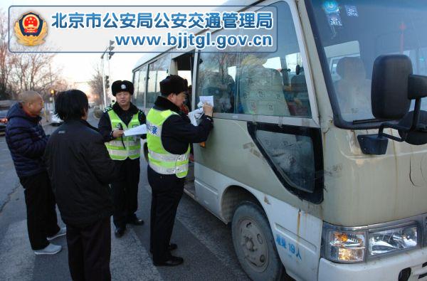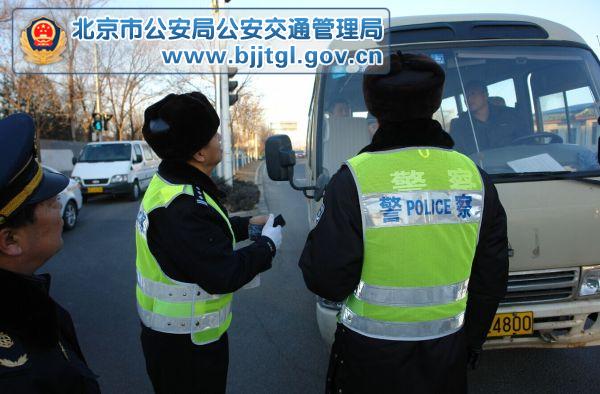 2月23日本市中小学生寒假开学第一天的返校高峰时段,昌平交通支队联合区公安分局、交通局、城管执法局等相关执法部门近百名执法人员组成8个检查组,分别在昌平、南口、崔村、燕丹、东小口、七里渠、马池口、立汤路设置8处校车检查站点,对所有7座以上接送学生的校车和其它车辆进行严格的交通安全检查。