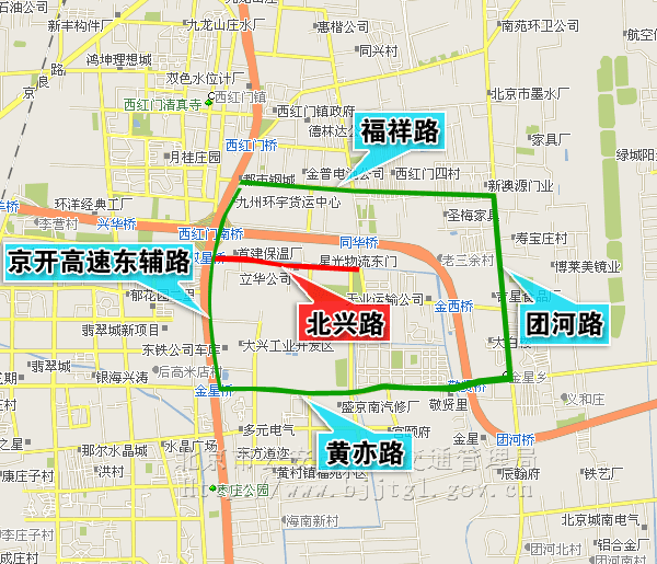 经有关部门批准,大兴区北兴路将进行道路施工。为保证施工期间的道路交通安全与畅通,根据《中华人民共和国道路交通安全法》及《中华人民共和国道路交通安全法实施条例》的有关规定,决定自2009年7月 15日起至9月25日止,大兴区北兴路(京开高速公路东辅路至东环路)禁止通行。车辆、行人可绕行京开高速公路东辅路、黄亦路、团河路、福祥路。