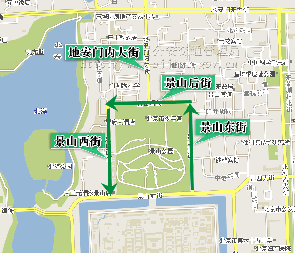 为确保2009年“五一”期间景山地区周边的道路交通安全与畅通,根据《中华人民共和国道路交通安全法》的有关规定,决定自2009年5月1日起至5月3日止,每天7时至17时,对景山地区周边道路采取以下临时交通管理措施(公共电、汽车除外):